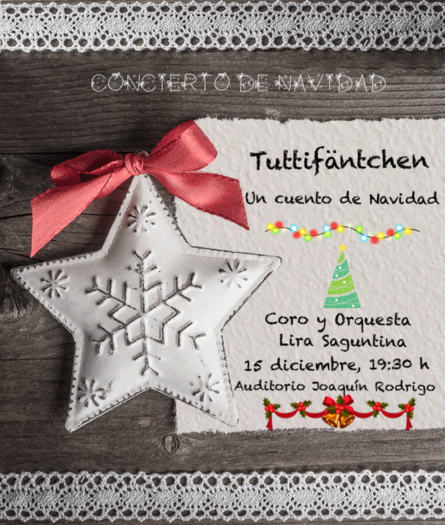 A continuación, en formación sinfónica, la Orquesta de la Lira Saguntina interpretará El cuento de Navidad Tuttifäntchen, del compositor alemán Paul Hindemith. Este cuento de hadas, compuesto en 1922, es la conocida historia de un trozo de madera, Kaspar, que quiere tener vida. En la trama intervienen personas del pueblo y vecinos que consiguen dar vida a la madera en forma de muñecos por Navidad. En el último movimiento de la suite se podrá escuchar el famoso villancico Adeste Fideles. Además, el actor local Toni Llorents actuará como narrador durante la pieza.