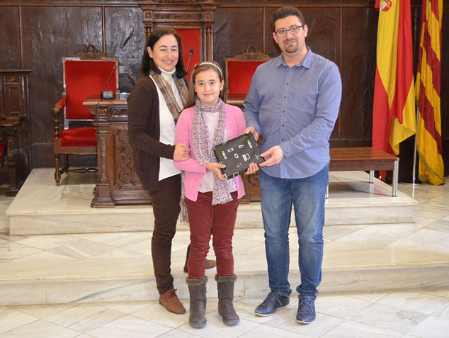 El delegado de Comercio del Ayuntamiento de Sagunto, Sergio Moreno, ha entregado el premio de una tableta digital a la ganadora del sorteo de la III Ruta de Escaparates de Navidad, María José Piedra Molés.