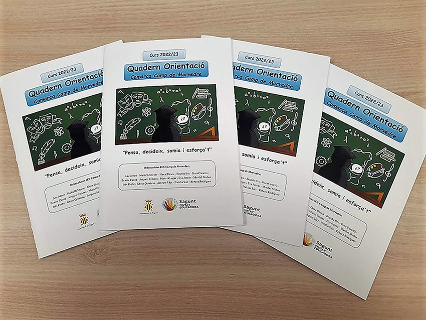 El departamento de Educación del Ayuntamiento de Sagunto ha editado la guía de orientación educativa: «Pensa, decideix, somia i esforça't», adaptada al presente curso académico 2022/2023 con previsión de poder elegir itinerarios formativos el próximo curso 2023/2024 y adelante, u orientados hacia la ocupación y el desarrollo profesional.