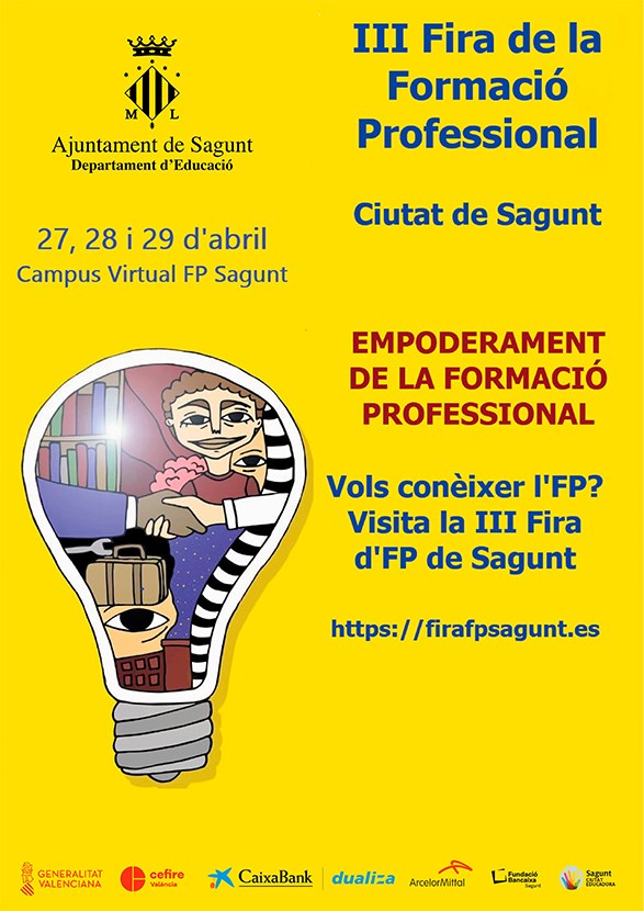 El departamento de Educación del Ayuntamiento de Sagunto, dentro del proyecto de Sagunt, Ciudad Educadora, organiza la tercera edición de la Feria de Formación Profesional Ciudad de Sagunto, bajo el lema ‘Empoderamiento de la formació profesional’ y tiene como objetivo la potenciación y dinamización de la FP en la comarca.