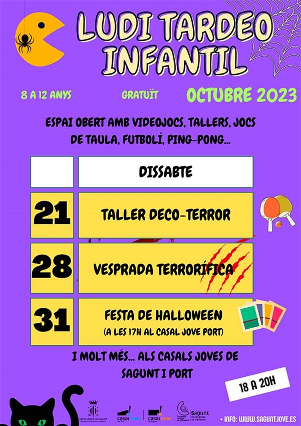 Entre las actividades para mayores de 12 años se encuentra un torneo de cartas, dominó, taller deco-terror, Lluna Plena “Halloween Jove” y tarde terrorífica.