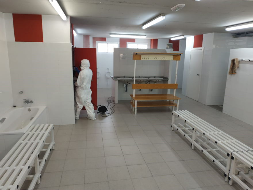 El departamento de Sanidad del Ayuntamiento de Sagunto ha desinfectado esta mañana, a través de la empresa Lokímica encargada de realizar estas tareas, los vestuarios del local, del visitante y de árbitros así como las oficias del Club Deportivo Acero del estadio del Fornás tras el positivo diagnosticado a un entrenador del club. Las instalaciones volverán a estar disponibles para su uso cuando se estime oportuno, pasadas las seis horas correspondientes a la desinfección.