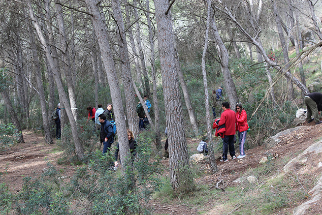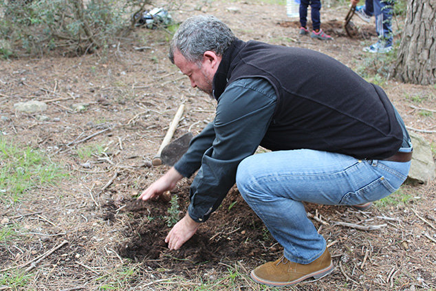 Una vez acabado el almuerzo, se procedió a la repoblación de esa zona del bosque con centenares de ejemplares de cuatro tipos de árboles: lentiscos, pinos blancos, carrascas y madroños. Durante la planta, se colocó una pancarta de la plataforma ciudadana creada para la protección de esta montaña como paraje natural municipal y se compartió con el público experiencias e ilusiones.