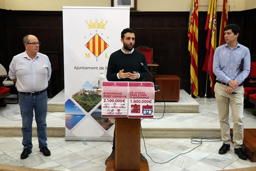 En el Día Europeo de las Pymes, el alcalde de Sagunto, Darío Moreno, ha comparecido en una nueva rueda de prensa en el Ayuntamiento de Sagunto para presentar, entre otros asuntos, el Plan Especial de Ayudas a Pymes y Autónomos que aprobó ayer por unanimidad el Pleno de la Corporación Municipal y para el que se destinará 1 800 000 €.