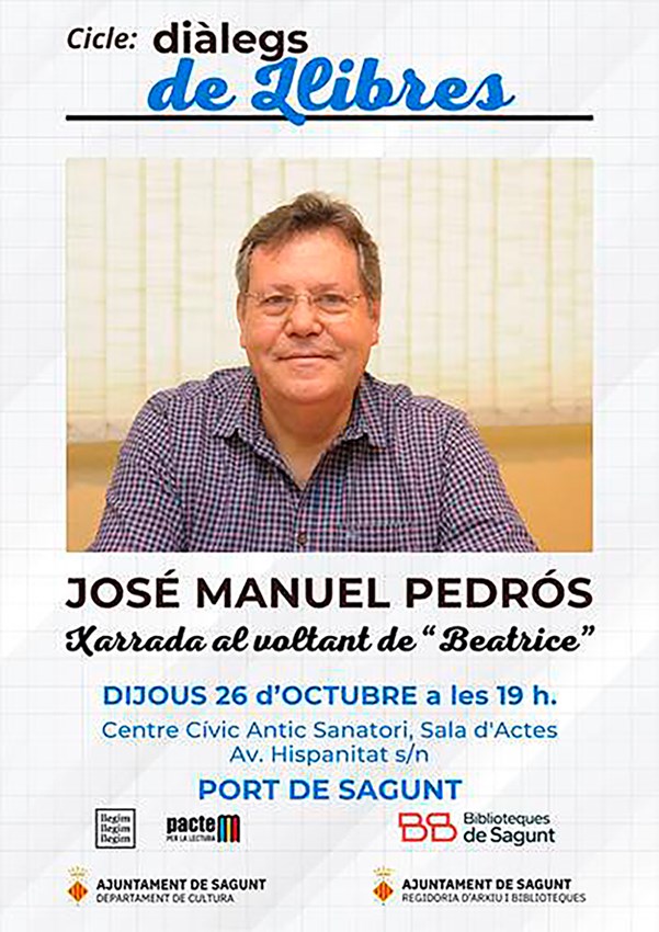 La siguiente jornada del ciclo de literatura ‘Diàlegs de Llibres’ contará con la participación del escritor porteño José Manuel Pedrós. El autor de novelas como Beatrice y El códice de María Magdalena acudirá el próximo jueves, 26 de octubre, a las 19 horas al Centro Cívico Antiguo Sanatorio para repasar su trayectoria como escritor.