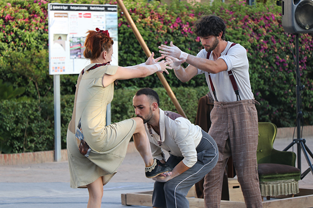 La compañía Voluta Circo ha sido la encargada de inaugurar esta temporada de representaciones con una obra de circo apta para todos los públicos en los jardines del Centro Cívico (Antiguo Sanatorio) de Puerto de Sagunto. Este espectáculo trata de tres personajes invitan a pasar a su casa y traspasar así la entrada que divide la vida pública de la privada. Con esta función se descubre la manera de relacionarse, la incomunicación, los miedos y los bucles que persiguen a una persona a lo largo de su vida.