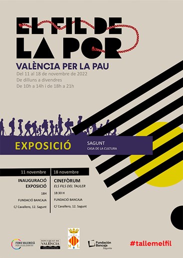 El Fons Valencià per la Solidaritat, del que forma parte el Ayuntamiento de Sagunto, ha puesto en marcha el proyecto de sensibilización El fil de la por, enmarcado en el programa de València per la pau, dirigido al alumnado de Secundaria. En la iniciativa, que en el municipio contará con dos actividades entre el 11 y el 18 de noviembre, una exposición y un cinefórum con la proyección de un documental, colaboran también la Fundación Bancaja Sagunto y la Diputación Provincial de Valencia.