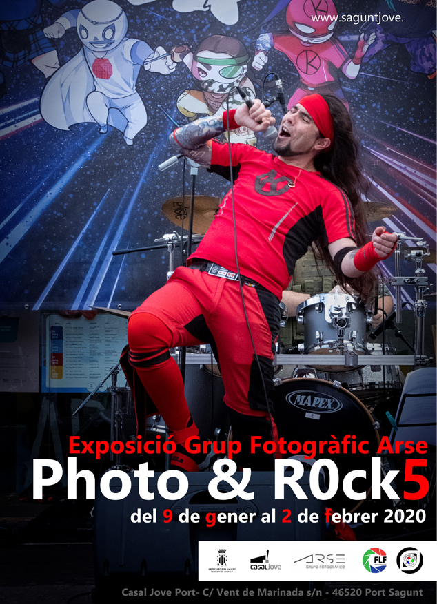 La concejalía de Juventud del Ayuntamiento de Sagunto con la colaboración de los socios y socias del grupo fotográfico Arse ha organizado la exposición Photo&Rock5. Una exhibición que recoge instantáneas de las diferentes actividades musicales que ha realizado el Casal Jove durante el año pasado. Durante la inauguración se servirá un vino de honor.