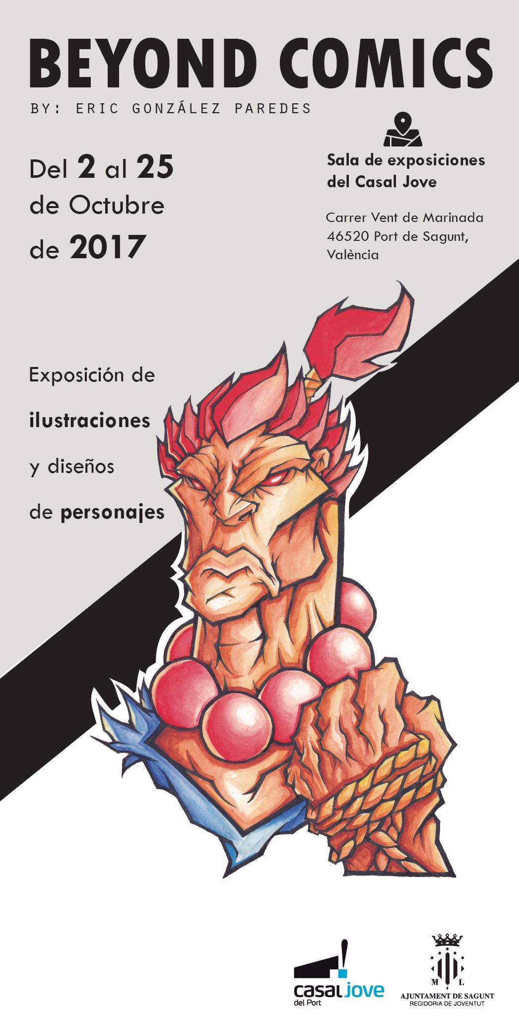 ​El joven ilustrador Eric González inaugurará su exposición Beyond Comics, el próximo viernes 6 de octubre a las 18 h en la sala de exposiciones del Casal Jove del Port de Sagunt (C/ Vent de Marinada, s/n), que la concejalía de Juventud del Ayuntamiento de Sagunto pondrá a disposición de los jóvenes creadores.