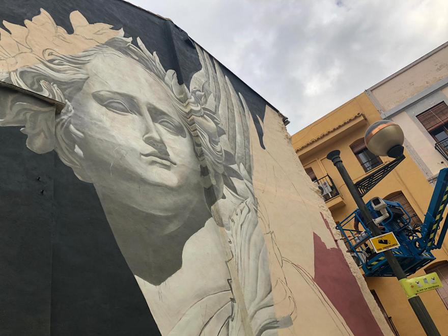 En él, Kraser ha pretendido plasmar la memoria histórica universal mediante la reinterpretación actualizada de la escultura grecorromana. Según el artista «he querido hacer la representación contemporánea de la diosa griega Niké o también conocida por los romanos como Victoria». El mural tiene como elemento principal a la diosa alada que observa atentamente a la población del entorno más antiguo de Sagunto, «como si nos dijese que no deberíamos olvidar nuestro pasado, pero también nos invita a conocerlo y se despide observándonos atentamente en el descenso de la principal vía de acceso a un enclave inolvidable como es Ciutat Vella». Representada como es habitual con la corona de laurel y la palma en mano, «estos elementos se desfragmentan en abstracciones y composiciones de colores en perfecto equilibrio, proporción y armonía, pero nunca perdiendo la esencia en la ejecución de la propia imagen», concluye el artista.