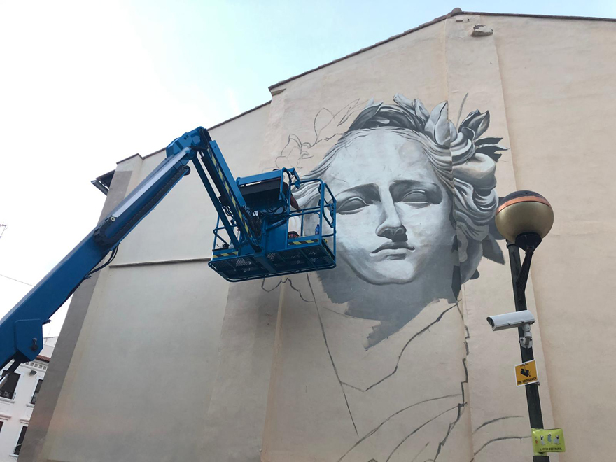Tras el mural de El niño de las pinturas en la avenida Sindicalista Miguel Lluch y el de La Nena Wapa Wapa en el trinquete que dieron comienzo al festival, este tercer mural lo ha elaborado uno de los artistas españoles más internacionales ya que con más de 30 años de grafitero a sus espaldas, Kraser ha participado en los principales festivales de arte urbano del mundo. Natural de Cartagena (Murcia), compagina su actividad de grafitero con la de muralista y de pintura en pequeño formato con técnicas mixtas, desde el óleo y el acrílico al lápiz, pasando por el collage.