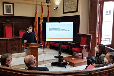 La presentación del estudio informativo del nuevo eje norte-sur de la Red Arterial Ferroviaria de Valencia y del estudio informativo de la línea de alta velocidad Valencia-Castellón elaborado por el Ministerio de Transportes, Movilidad y Agenda Urbana ha tenido lugar esta mañana en el Salón de Plenos del Ayuntamiento de Sagunto.