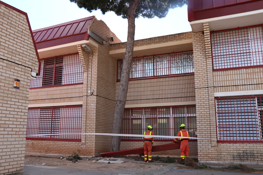 Algunos centros escolares también han sufrido incidencias, como la caída de una placa del techo del CEIP Baladre o la caída de árboles en el aulario infantil de La Pinaeta, además de desprendimientos de cornisas en San Pedro y Mediterráneo. Asimismo, muchos contenedores se han desplazado en vías públicas incluso golpeando coches, árboles y vallas publicitarias cercanas a la Residencia Monte Arse han sido arrancados por el viento, antenas y toldos han caído en varios inmuebles, numerosos cascotes de edificios en Baladre han caído, cables de alta tensión han quedado sueltos en la calle Teodoro Llorente y andamios han sufrido desperfectos cayendo a las fincas colindantes, entre otros muchos avisos.