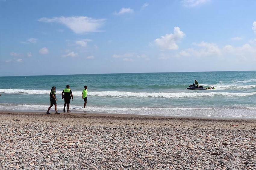 El simulacro ha consistido en el rescate de dos víctimas: una consciente y la otra se encontraba totalmente inconsciente en el agua. Una vez ha sido avistada desde la torre de control, tanto el grupo de socorrismo y salvamento marítimo como el dispositivo de policías locales se han coordinado a la perfección para realizar el rescate. La moto acuática del servicio de socorrismo y la embarcación de la Policía Local han logrado rescatar a las víctimas y se ha habilitado una zona de seguridad que ha permitido que la moto acuática la trasladara hasta la orilla, donde, entre otras medidas, se le han realizado ejercicios de reanimación cardiopulmonar y posteriormente, han trasladado al hospital con la ambulancia a la víctima inconsciente.