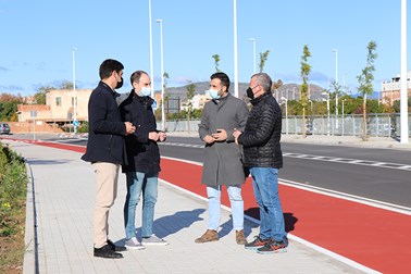 El alcalde de Sagunto, Darío Moreno, ha visitado esta mañana la avenida acompañado del concejal de Urbanismo, Quico Fernández, el edil de Contratación y Movilidad Urbana, Javier Raro, y el concejal de Playas, Roberto Rovira.