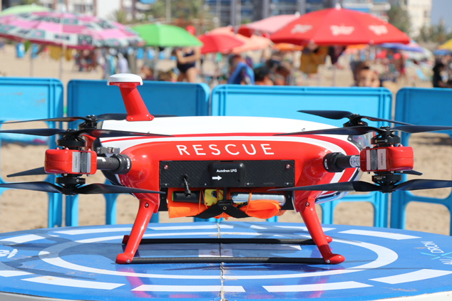 En esta campaña, la empresa General Drones ha implantado de manera piloto un servicio de drones de salvamento en las playas que cuentan con la insignia de Bandera Azul y que apuestan por la innovación y la seguridad para sus bañistas, utilizando la tecnología de Auxdron LFG. Los seis municipios costeros que ya apuestan por este servicio son Sagunto (en la playa de Puerto de Sagunto), Ibiza (en Es Riu), Menorca (en Cala’n Bosch), Extremadura (en Cheles), Orellana y Fuengirola.