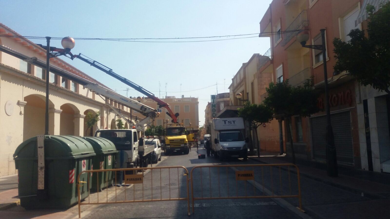 Una avería en la grúa obligó a retrasar hasta hoy la instalación de la climatización provisional en el Mercado Municipal del Puerto de Sagunto. La grúa se estropeó mientras realizaba las tareas de montaje y no podía ni plegar ni desplegar los brazos de elevación.