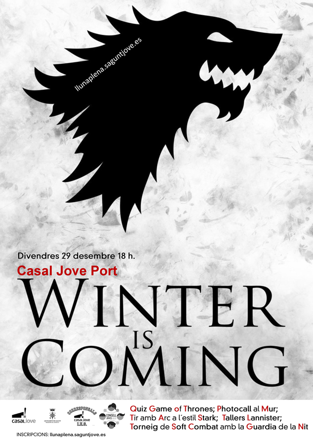 Bajo el título ‘Winter is coming to the Casal’, el local joven de la calle Vent de Marinada celebrará el próximo viernes 29 de diciembre el día temático dedicado a la serie Juego de Tronos.El dispositivo de limpieza de la SAG retira un total de 208 toneladas de cenizas tras la tradicional cremà