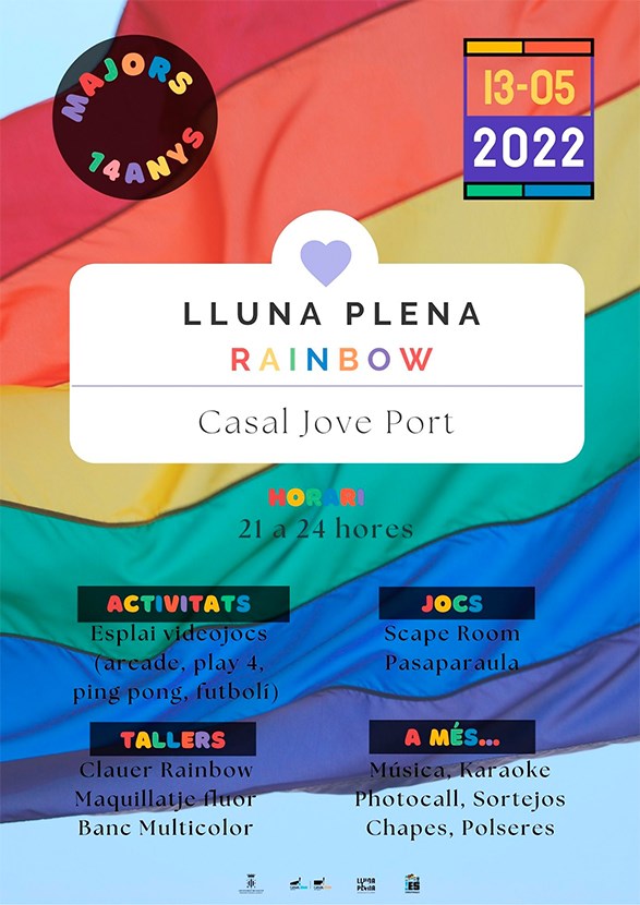 Este viernes, 13 de mayo, el departamento de Juventud e Infancia del Ayuntamiento de Sagunto organiza en el Casal Jove de Puerto de Sagunto la Lluna Plena Rainbow, una edición especial de este evento mensual con motivo del Día Internacional contra la Homofobia, Transfobia y Bifobia, que se conmemora cada año el 17 de mayo.