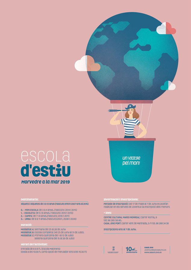 La concejalía de Juventud del Ayuntamiento de Sagunto organiza l’Escola d’Estiu 2019, cuya temática para este año es la celebración del 5º centenario de la vuelta al mundo de Magallanes y Elcano. La actividad ha completado sus plazas con más de 400 niños y niñas inscritos.