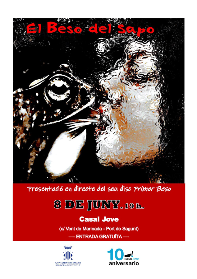 El sábado 8 de junio, a las 19 horas, el grupo de música local El beso del Sapo presentará su nuevo trabajo, Primer Beso, en el Casal Jove. La entrada al evento es gratuita y se enmarca en el ciclo Concerts del Casal, organizado por la concejalía de Juventud del Ayuntamiento de Sagunto.