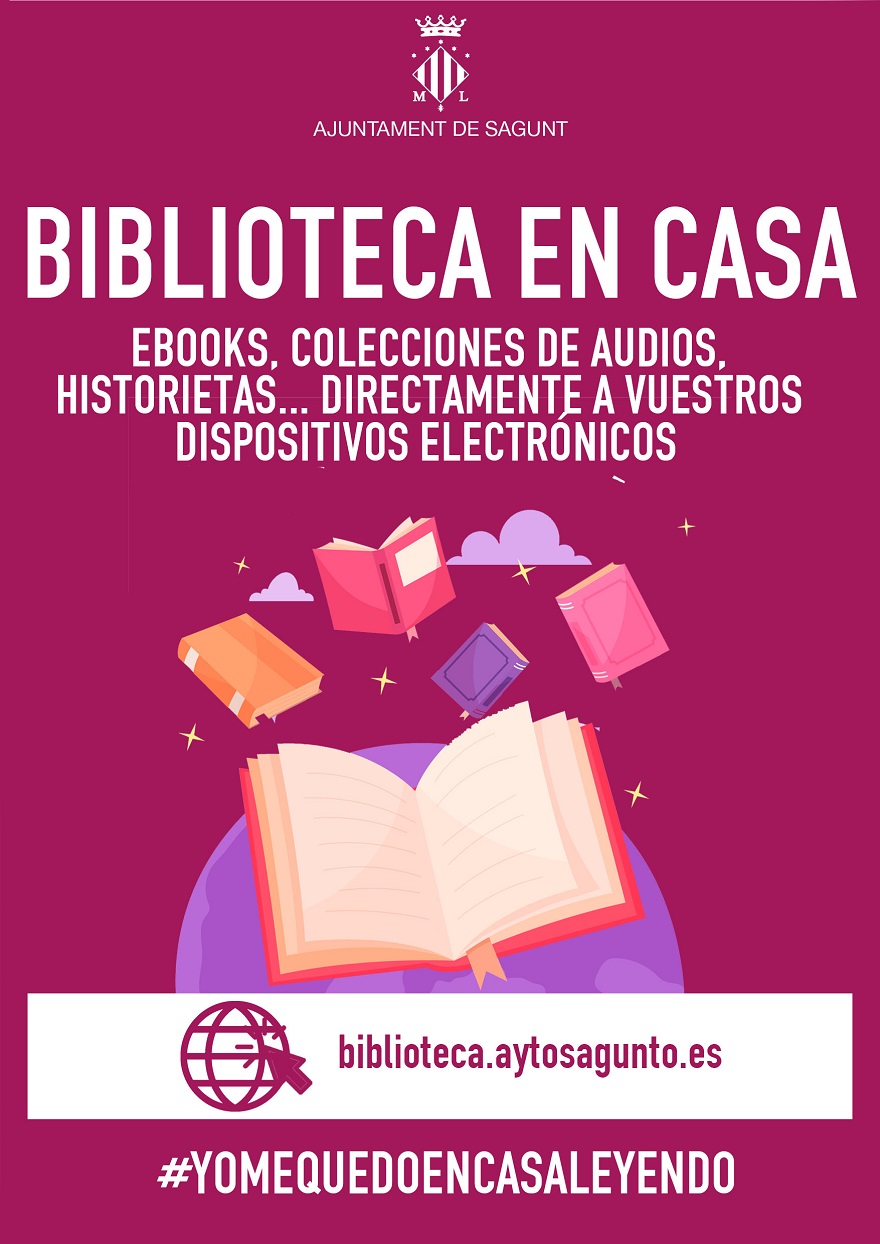 La Biblioteca Pública de Sagunto en el Día del Libro, y consciente de las necesidades que genera el estado de alarma frente a la COVID-19, ha reforzado sus servicios de la única manera posible después del cierre de su actividad física de manera momentánea. Para ello se ha incrementado la oferta de e-books en su