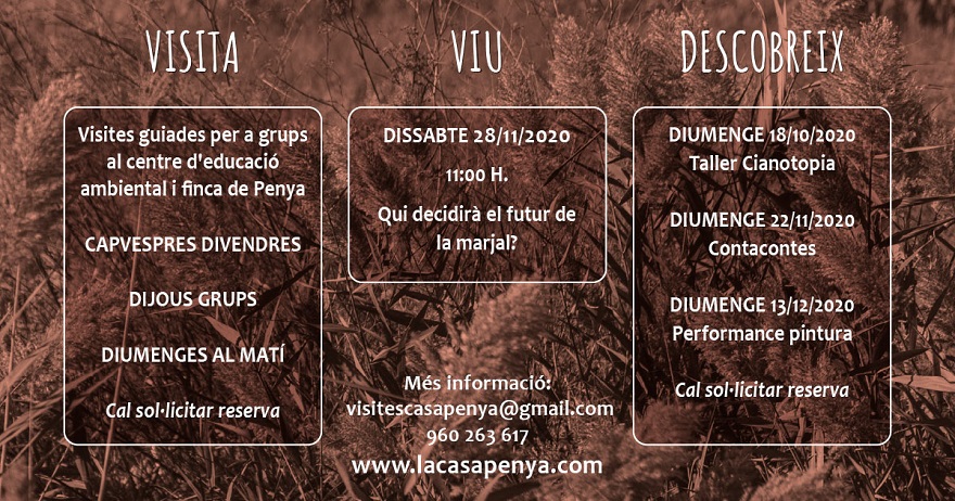 Desde la Comisión de Educación Ambiental de AE-Agró esperan que resulten atractivas e interesantes las diferentes opciones que ofrecen este otoño para visitar, vivir y descubrir La Casa Penya con naturaleza, arte, custodia, atardeceres y marjal.