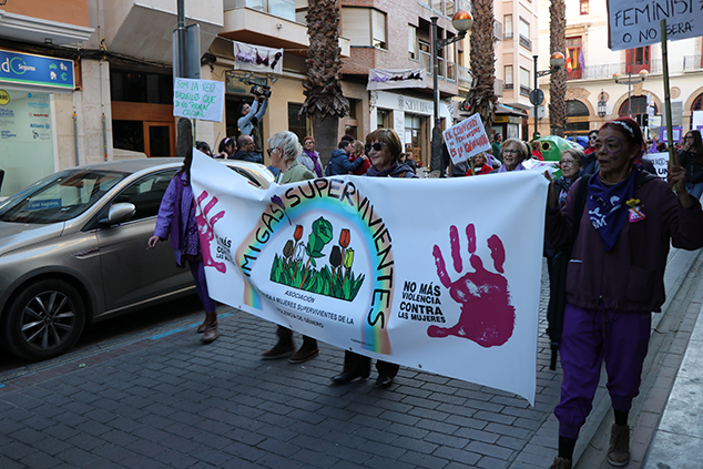 La manifestación estuvo encabezada por una pancarta de la propia coordinadora con el lema Si nosotras paramos, se para el mundo, a la que le seguían otras de diferentes colectivos y entidades de la comarca, así como carteles en los que se podían leer demandas feministas. Durante todo el recorrido, festivo y reivindicativo, los y las manifestantes iban entonando cánticos y proclamas hasta llegar a la plaza Cronista Chabret donde se leyó el manifiesto de la Coordinadora. Este documento gira en torno a cuatro ejes reivindicativos.