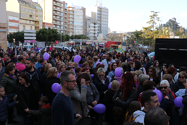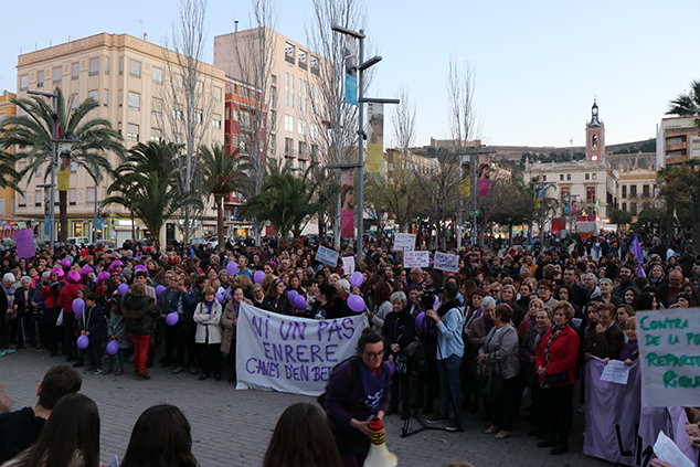 La ciudadanía de la comarca se sumó a las reivindicaciones de la Coordinadora Feminista del Camp de Morvedre en la manifestación que tuvo lugar la tarde del 8 de marzo con motivo del Día Internacional de la Mujer y como colofón al día de huelga feminista. Hombres y, sobretodo, mujeres de todas las edades se unieron en una concentración que recorrió el centro histórico de Sagunto en la que predominaba el color morado en la ropa, banderas, pelucas y globos para manifestar su apoyo a la causa feminista por la que se demandaba, entre otra cosas, la igualdad plena entre hombres y mujeres en todos los ámbitos o la repulsa a la violencia de género.