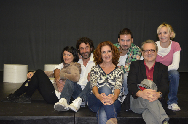 La directora Amparo Vayá junto al regidor de cultura José Manuel Tarazona y los actores y actrices de "Per amor"