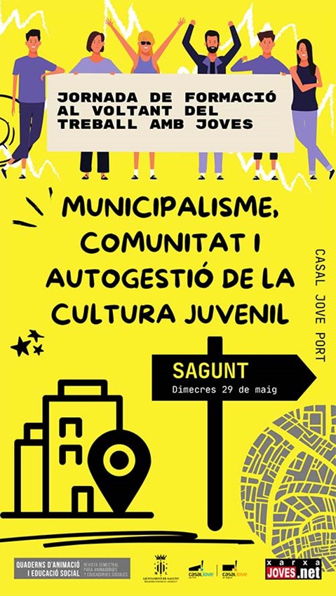 El próximo 29 de mayo la concejalía de Juventud e Infancia del Ayuntamiento de Sagunto junto a la Revista Quaderns d´Animació i Edicació Social y el Consorcio Joves.net organizan una sesión formativa titulada ‘Trabajar con jóvenes en el ámbito local: municipalismo, comunidad y autogestión de la cultura juvenil’.