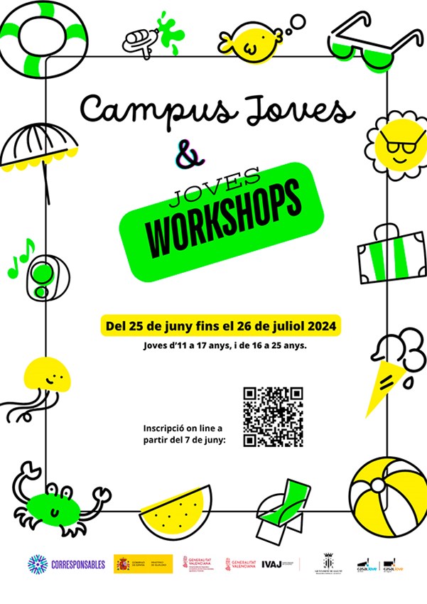 La concejalía de Juventud e Infancia organiza para este verano más de cuarenta actividades para jóvenes de entre 11 y 25 años. Dentro del Programa de Ocio Educativo se han diseñado diversas acciones englobadas en dos grandes grupos: los Campus Joves y los Workshops. Las actividades se realizarán entre desde el 25 de junio al 26 de julio.