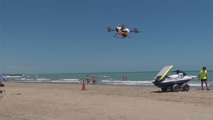 El dron tarda 5 segundos en despegar y tiene 25 minutos de autonomía, además de poder alcanzar 85 kilómetros por hora. Asimismo, cuenta con un altavoz y 2 chalecos salvavidas y está protegido contra el agua y la arena.