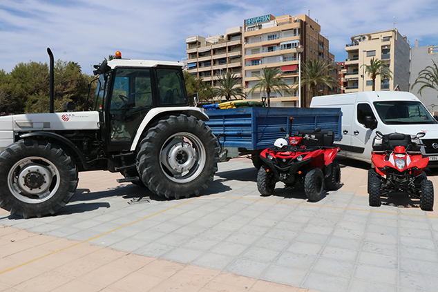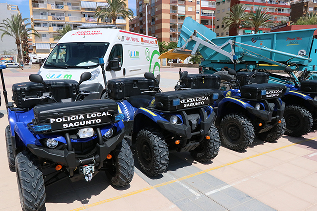 Por su parte, los 11 agentes de la Policía de Playas disponen de cuatro quads, así como de vehículos patrulla y una embarcación. El servicio de limpieza proporcionado por la SAG, además de los medios habituales como máquina fregadora, sopladores y furgonetas auxiliares, cuenta en este caso con máquinas limpiaplayas y tractores.