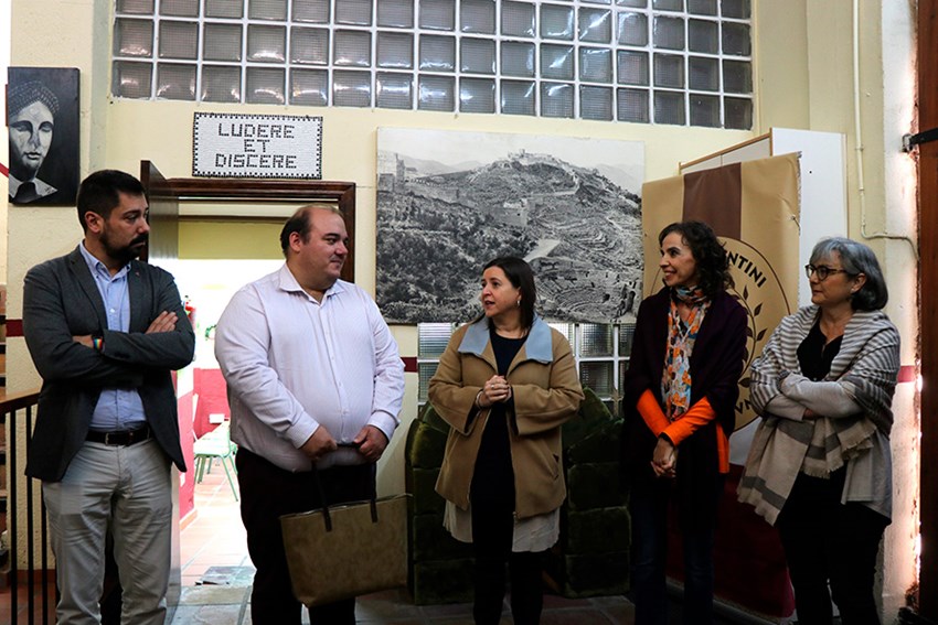 La directora general de Innovación e Inclusión Educativa, María del Rosario Reig, junto a su equipo de la Conselleria de Educación, ha visitado el Aula didáctica de Cultura Clásica - Saguntina Domus Baebia