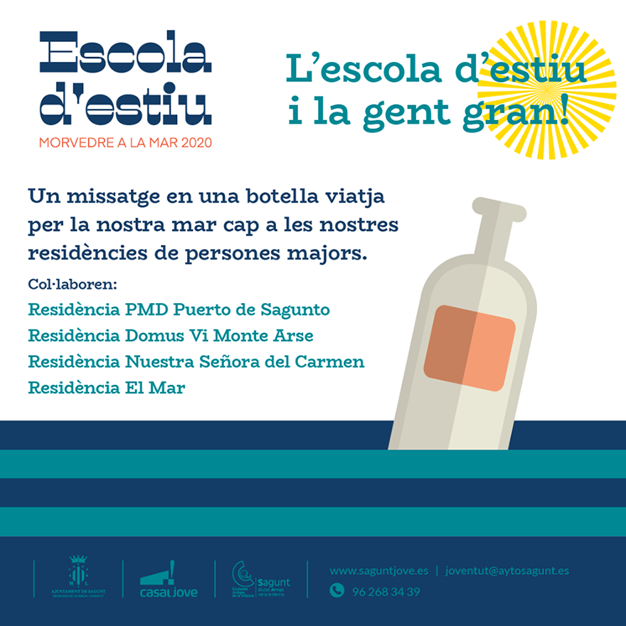 La otra iniciativa es ‘L’escola d’estiu i la gent gran’, es una idea de apoyo y afecto a la población mayor que vive en las residencias de Sagunto. Cabe recordar que durante el confinamiento, la concejalía de Juventud e Infancia ya inició una colaboración con los equipos de los centros para aliviar el sufrimiento provocado por la falta de visitas y la incertidumbre por el virus, acercando la población infantil y juvenil a la gente mayor.