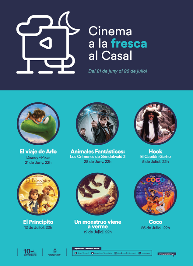 Además, para el próximo viernes 19 de julio a las 22 horas está programada la película Un monstruo viene a verme, y como cierre de cartelera del ‘Cinema a la fresca al Casal’ se proyectará Coco, el 26 de julio a las 22 horas.