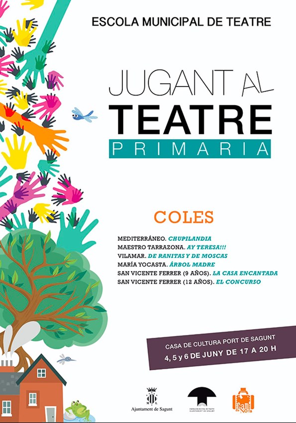 Jugant al Teatre y sus veinte grupos de teatro en los colegios tendrán sus encuentros el 4, 5 y 6 de junio a las 17 horas para el alumnado de primaria, con la creación de diversas piezas teatrales que giran alrededor de la resolución de conflictos humanos.