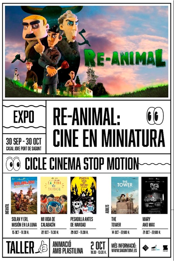 Además de este acto, el stop motion será protagonista en octubre de la programación de cine infantil y de adultos, por lo que se han programado cinco películas. Las películas del ciclo infantil tendrán lugar a las 11:30 h y son las siguientes: Solan y Eri, misión en la luna (el 15 de octubre); Mi vida de calabacín (el 22 de octubre); y Pesadilla antes de navidad (29 de octubre). El ciclo de adultos contará con The tower (14 de octubre) y Mary and Max (21 de octubre), ambas proyecciones a las 22 h. Asimismo, se ha programado un taller infantil para el próximo domingo día 2 de octubre, que ya ha cubierto todas sus plazas.