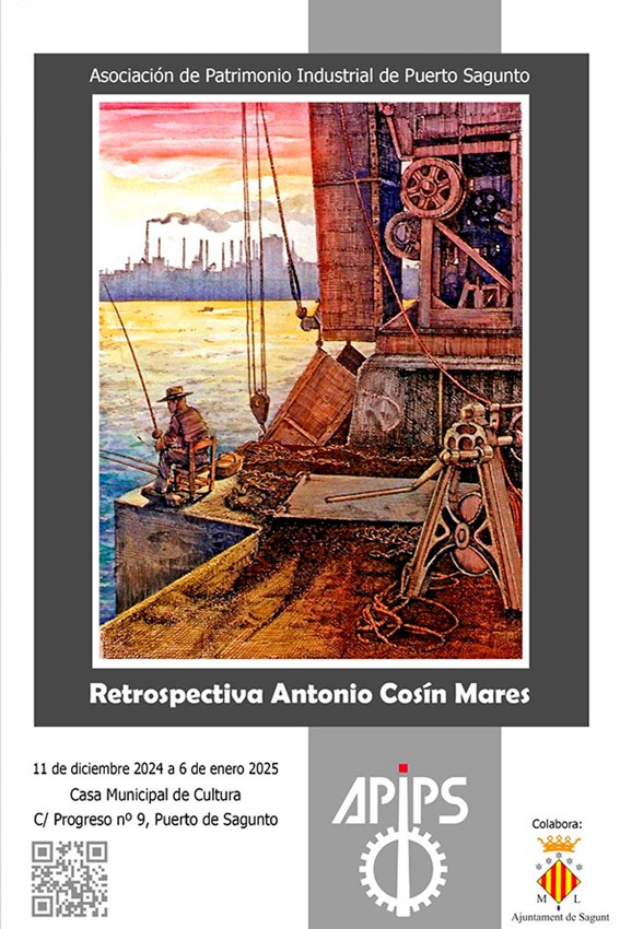 Retrospectiva Antonio Cosín es el título que recibe la exposición con la que se rinde un justo tributo a la extensa obra de este reconocido artista porteño. La Asociación de Patrimonio Industrial de Puerto de Sagunto (APIPS) ha organizado y comisionado esta muestra artística, en colaboración con el Ayuntamiento de Sagunto.