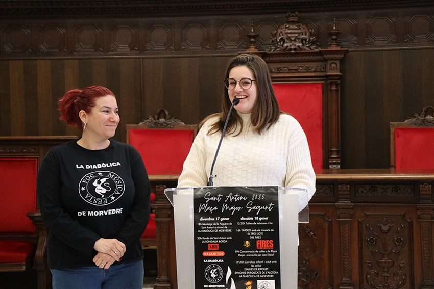 En la rueda de prensa de presentación de la programación de Sant Antoni en la plaza Mayor han participado la concejala de Fiestas y Cultura Popular, Patricia Sánchez; y la presidenta de La Diabòlica de Morvedre, Cristina Rodríguez.