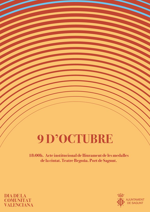 Con motivo de la festividad del 9 de Octubre, Día de la Comunidad Valenciana, el Ayuntamiento de Sagunto entregará las Medallas de la Ciudad este domingo en el Teatre de Begoña. Este año se ha concedido la Medalla de Oro a la Sociedad Vitivinícola y al Atlético Saguntino, y las Medallas de Plata a Juan Picazo, Manuel Hernández, Kike León, Rosa Graells, Concha Cañete y Victoria Sevilla.