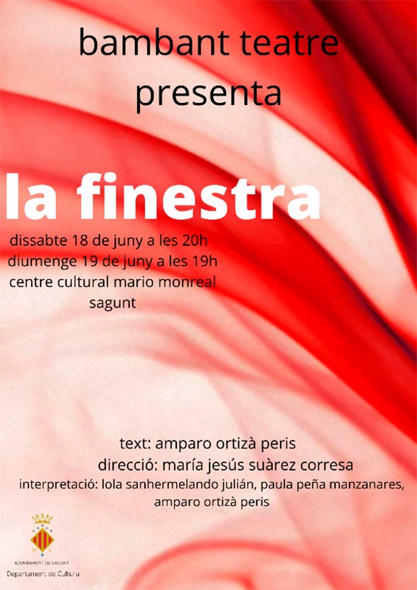 La obra teatral La Finestra, de la compañía Bambant Teatre, es un drama social apto para todos los públicos. La representación tendrá lugar durante dos días. Por un lado, este sábado, 18 de junio, a las 20.00 horas y, por otra, el domingo, 19 de junio, a las 19 horas. Las dos funciones tendrán lugar en el Centro Cultural Mario Monreal de Sagunto. Esta obra es en valenciano y tiene una duración de 80 minutos. Así mismo, la entrada tiene un precio de 7 euros, que se puede comprar a través de servientradas.