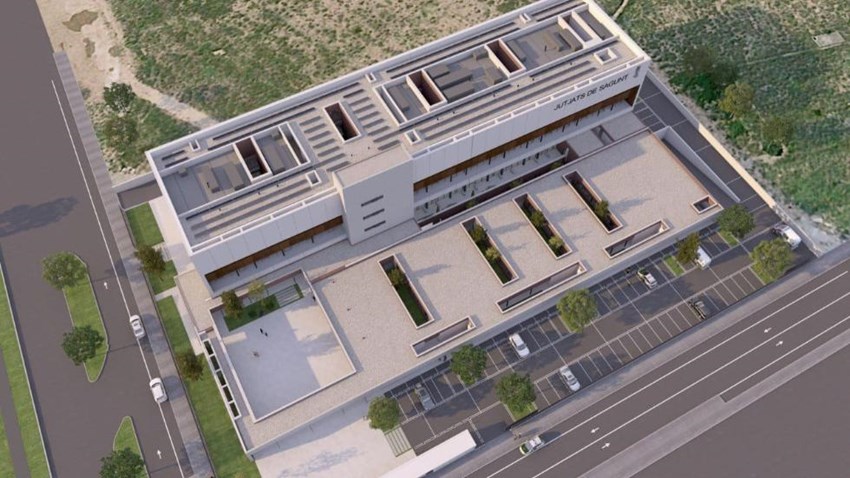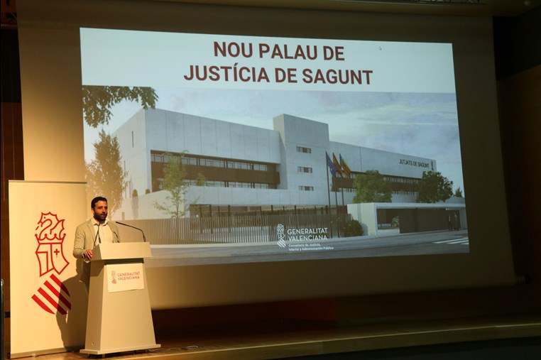 La consellera de Justicia, Interior y Administración Pública, Gabriela Bravo, junto con el alcalde de Sagunto, Darío Moreno, ha presentado esta mañana el proyecto del nuevo Palacio de Justicia de Sagunto. Este se construirá en una parcela cedida por el Ayuntamiento de Sagunto que tiene 10.761 metros cuadrados y entrará en servicio a principios del año 2026, tras veinte meses de obras y una inversión de 24,2 millones de euros. Atenderá a una población de más de 90.000 personas repartida en 16 municipios en la futura avenida de Les Corts de Sagunt.