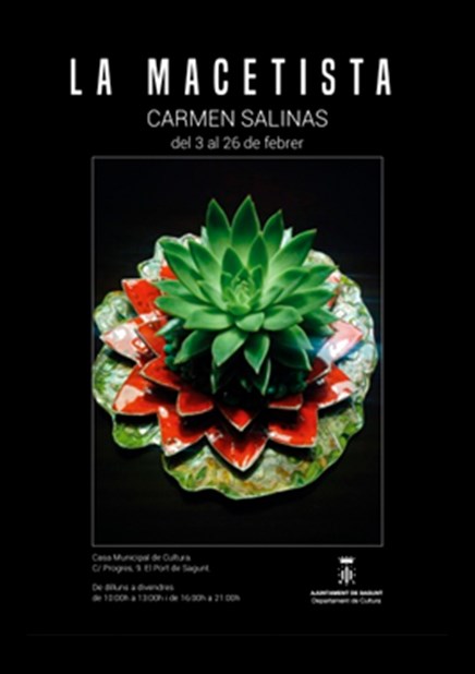 El departamento de Cultura del Ayuntamiento de Sagunto ha organizado la exposición de la artista Carmen Salinas Entrena titulada La Macetista. La inauguración tendrá lugar el próximo 1 de diciembre en la Casa Municipal de Cultura de Puerto de Sagunto a las 19 horas.