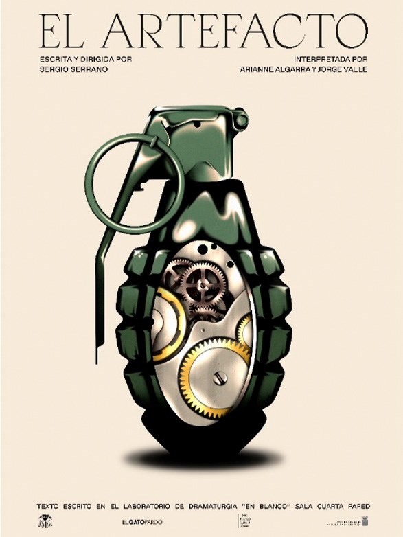En la obra de teatro El Artefacto podremos ver una empleada de una oficina de correos que descubre en un paquete, gracias a un escáner, una granada de mano. Todo se paraliza. Todo se queda quieto. Silencio. ¿De dónde viene esa granada? ¿Dónde va? ¡Que nadie la toque! Volvemos atrás. ¿Qué hace esa granada enterrada en la montaña? ¿Por qué motivo no se lanzó?