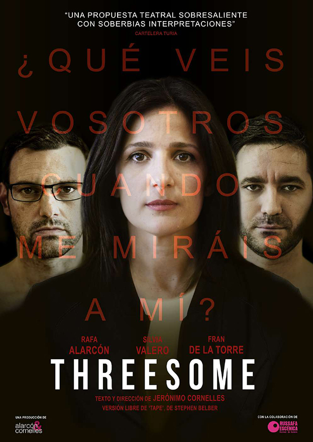 La obra de teatro Threesome, de la compañía Alarcón&Cornelles, llega a la Casa Municipal de Cultura de Puerto de Sagunto el próximo viernes, 16 de abril, a las 19.30 horas. El espectáculo tendrá una duración de 90 minutos, la entrada tiene un precio de 7 euros y está destinada a público mayor de 14 años. Se trata de una tragicomedia negra en castellano.