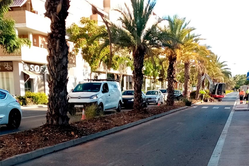 Se va a proceder a la retirada del seto central que divide la calle en ambos sentidos, se reacondicionará la tierra y el sistema de riego y se plantarán arbustos aislados entre cada palmera