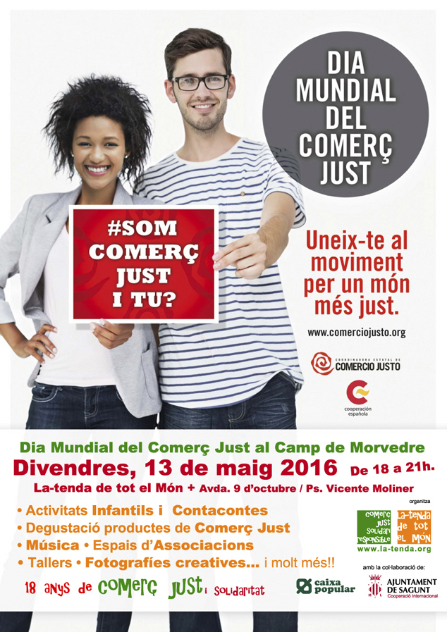 La ONG La Tenda de Tot el Món y la concejalía de Cooperación del Ayuntamiento de Sagunto convocan este año a la ciudadanía del Camp de Morvedre a celebrar el Día Mundial del Comercio Justo con el lema