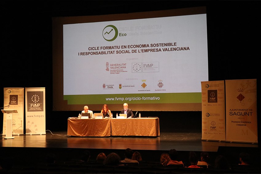 El alcalde de Sagunto, Darío Moreno, ha inaugurado esta mañana, en el Centro Cultural Mario Monreal, la tercera jornada del Ciclo Formativo en Economía Sostenible y Responsabilidad Social de la Empresa Valenciana, organizado por la Conselleria de Economía Sostenible, Sectores Productivos, Comercio y Trabajo junto con la Federación Valenciana de Municipios y Provincias (FVMP), que en esta tercera jornada ha contado con la colaboración el departamento de Promoción Económica e Industrial del Ayuntamiento de Sagunto. Además, también ha participado con una ponencia la técnica del departamento.
